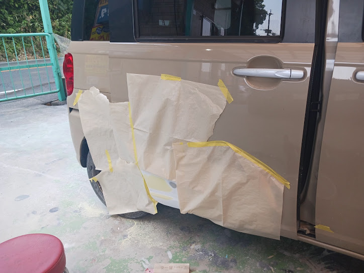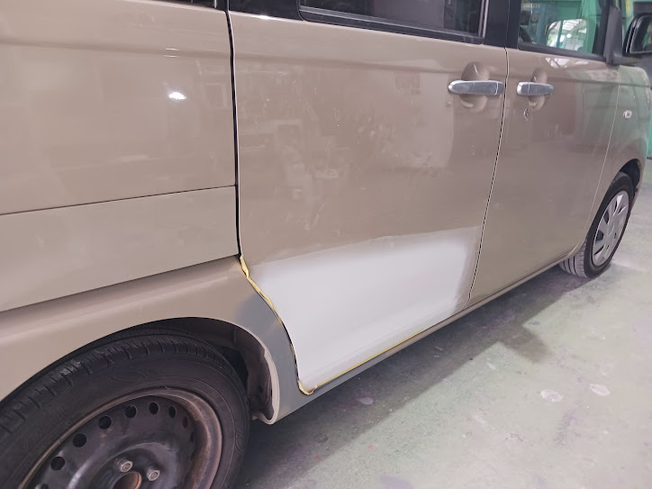【作業内容】右スライドドア修理・右サイドシル修理・右クォーター修理