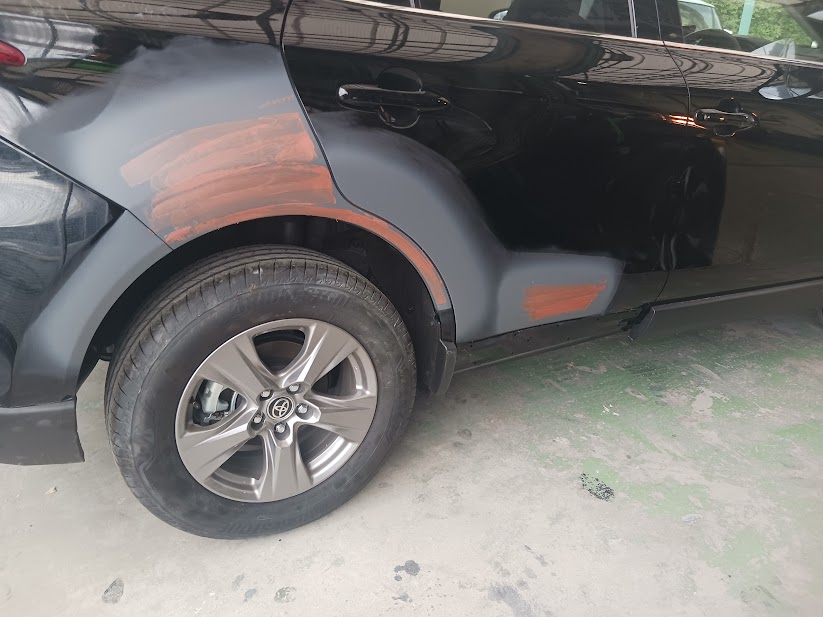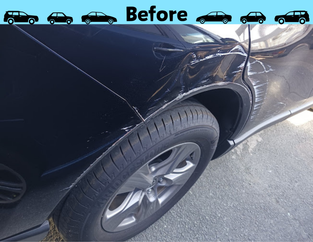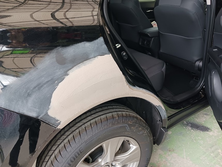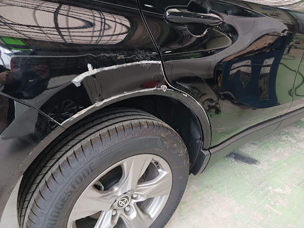 【作業内容】右リアドア修理・右クォーター修理・右リアバンパー修理