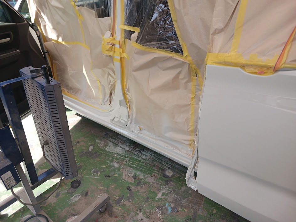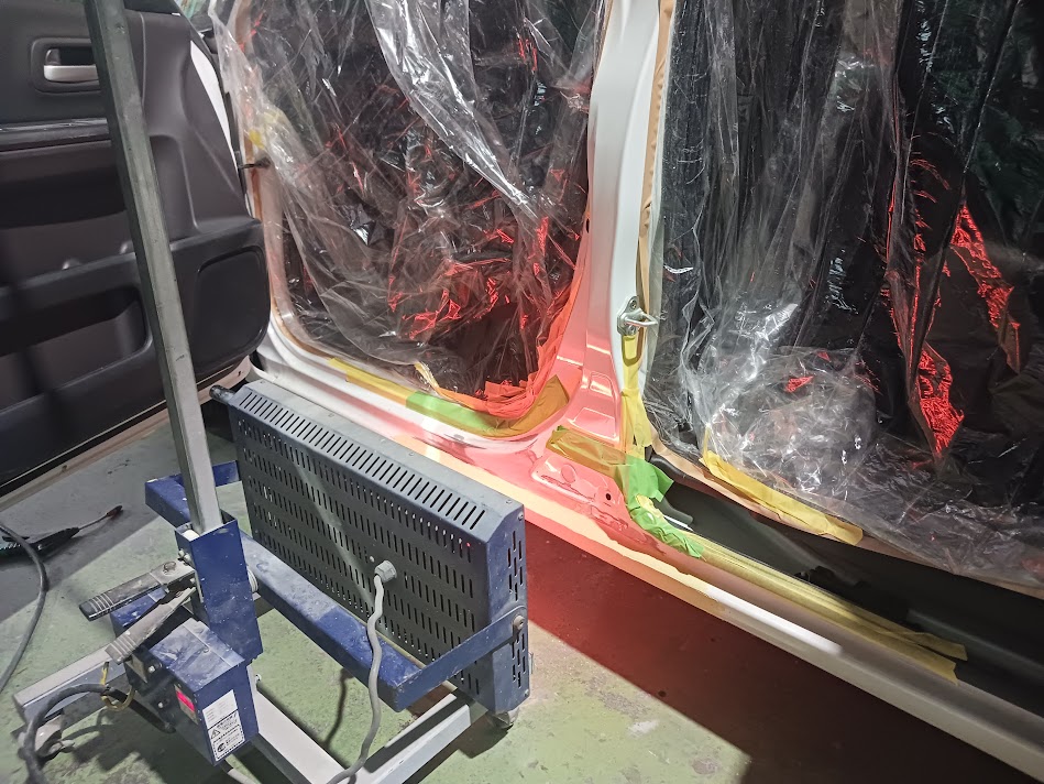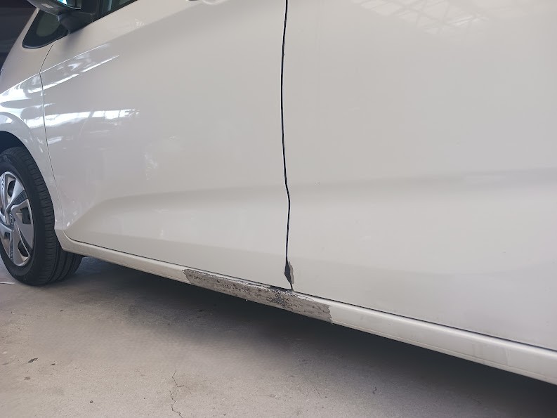 【作業内容】左フロントドア交換・左スライドドア修理・左サイドシル修理