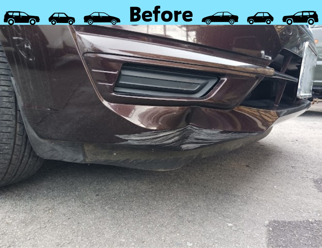 バンパー下部にヘコミを伴うキズが確認できます。